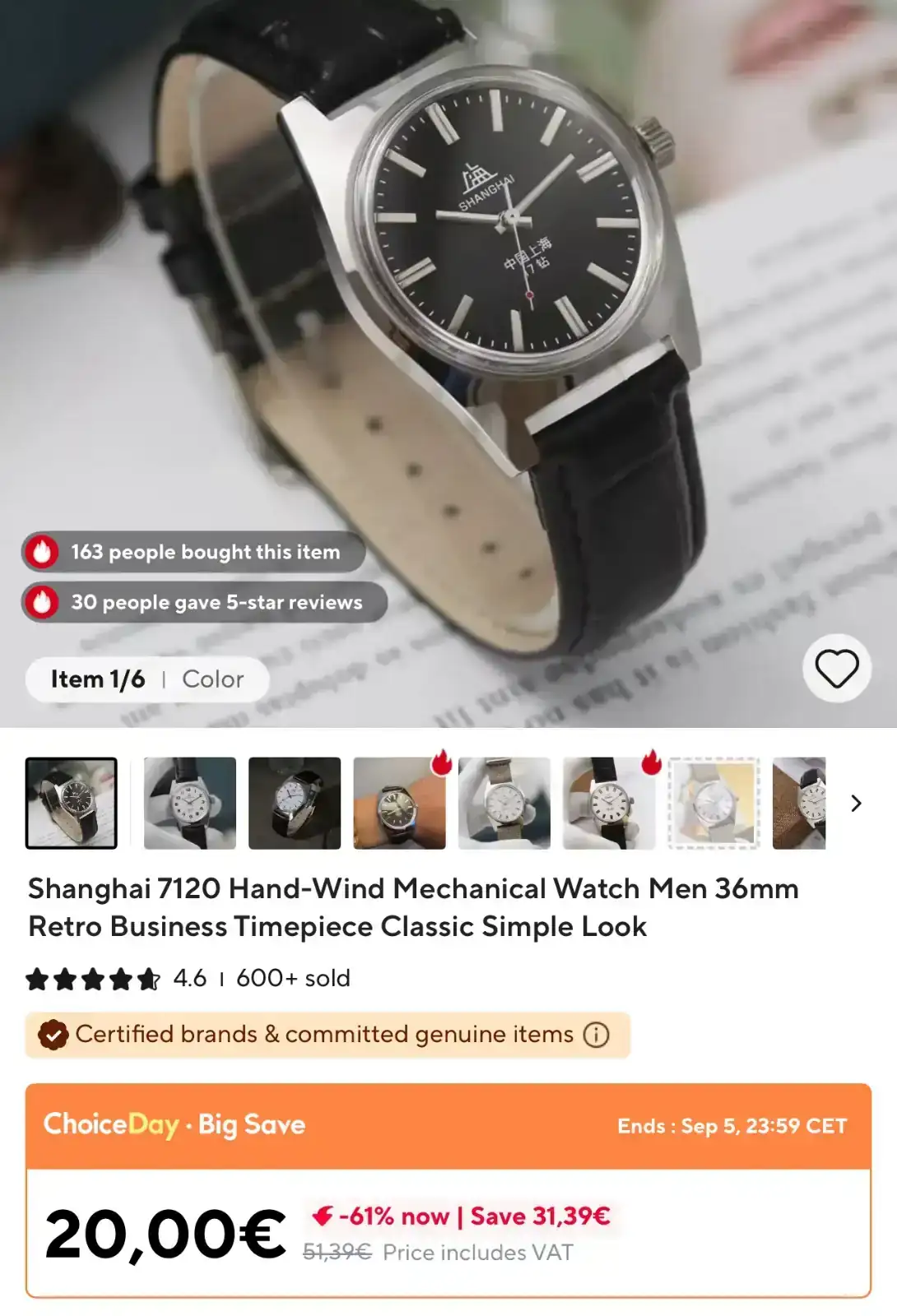 20 euros!!! Por el precio de media correa tienes un reloj entero 😜Desde como compré el último reloj, han pasado meses. Pero desde que compré la última “mierdilla” tres o cuatro días, de hecho me llegará el lunes. Aquí habría que distinguir entre que es una compra relojera per sé, y que es una compra convulsiva 😂 en mi caso, un chino, eso sí, de toda la vida, cuerda, mecánica, 36 mm, y no pidas más 😂