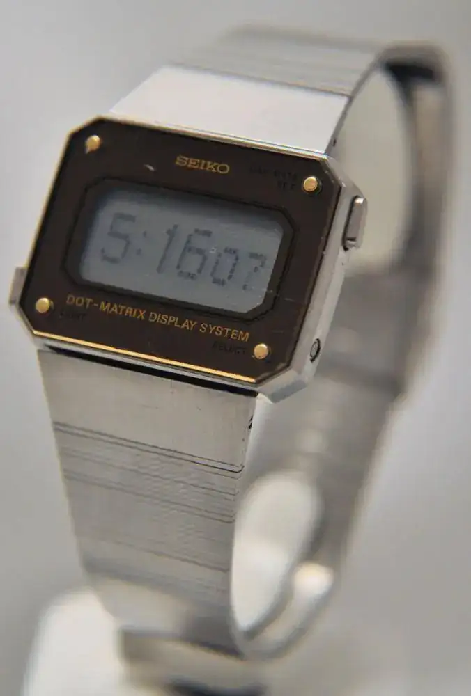 Corre el año 1980, y Seiko presenta en el mercado el primer reloj con pantalla electrónica de “matriz activa”, es decir una pantalla lcd con una matriz de puntos de resolución, en este caso 40x8, y cuyos pixeles se pueden activar de forma individual por un transistor y un condensador, a su vez controlados todos y cada uno por un procesador; de esta forma se puede mostrar cualquier tipo de imagen de la que esa resolución sea capaz, permitiendo además imágenes en movimiento, hacer “scrolling”, etc…. Sería el tatarabuelo de los actuales “Smart Watch” nada más y nada menos. Hasta ese momento existían “matrices pasivas” y la visualización se efectuaba al activar o desactivar segmentos, en concreto 7 para formar cada número.