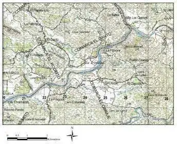 En estas fotos vemos una hoja del mapa escala 1:50.000 de Nicaragua y un "Map Meter" convencional para el calculo de distancias en mapas de diferentes escalas. Estas herramientas eran imprescindibles para operaciones tácticas antes de la llegada de los sistemas de posicionamiento por satélite.