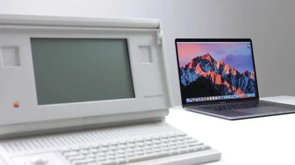 En la fotos podemos ver a un joven Steve Jobs con su Seiko "Dot Matrix" y después junto a su heredero el iWatch; así como al "Macintosh Portable" junto a su nieto el "Mac Book". Fotos muy, muy curiosas!!