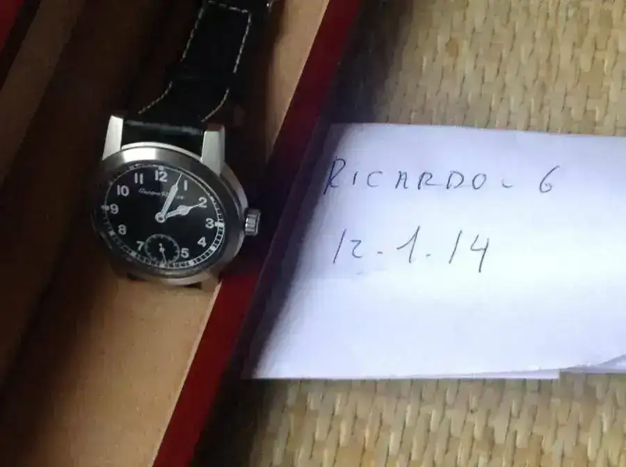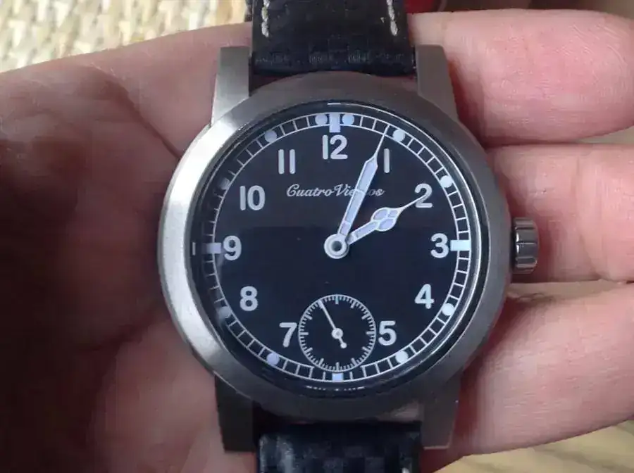Magnífico reloj tipo aviador, realizado por Pedro Izquierdo. En su tienda está agotado.