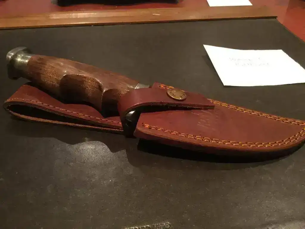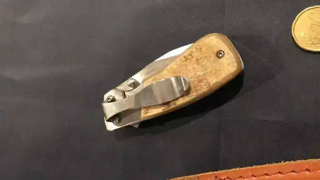 Tiene Clíp de cinturón. La encontré en Australia y esta completamente impecable sin usar, igual que el cuchillo. La vendo por 45 más envío y regalo una funda de piel de su tamaño.