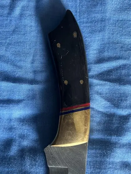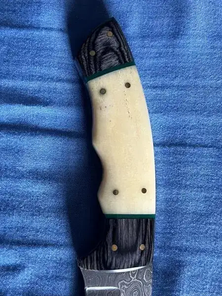Cuchillo mango asta clara y negra, dos tonos, mide 24 cm.