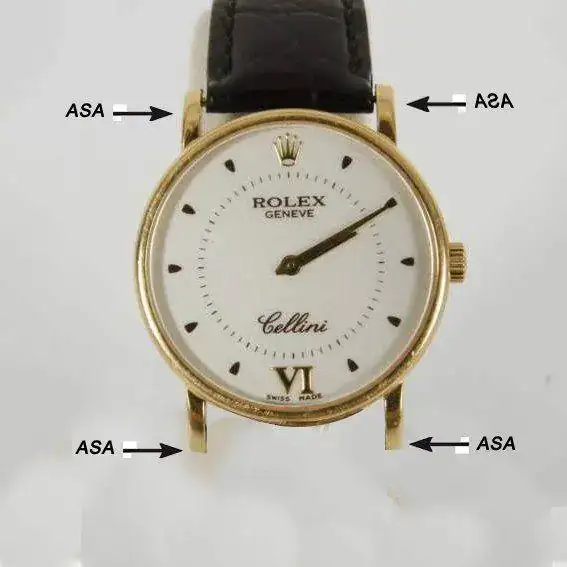 Tome el lector en cuenta que he descrito en la anterior imagen a qué me refiero cuando apelo al término “asa” . En muchas partes de habla hispana se les llama asas o patas a la sección de la caja del reloj de la cual se sujeta la correa o el armis.