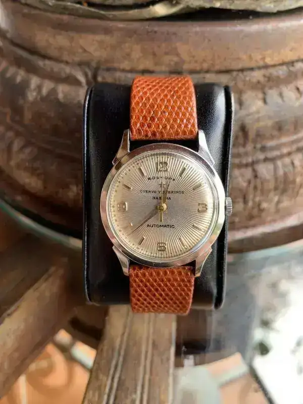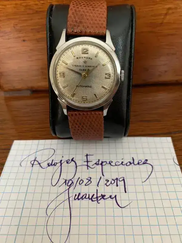 Precioso reloj Cuervo y Sobrinos , habanero original época Baptista, cal. Roskpof swiss , automático, calendario, 34 mm, esfera soleil, correa Hirsch nueva, muy bien cuidado, cristal plexi, estado de marcha, incabloc , non-magnétic , waterproff ( yo no haría ), precio 350,- € gastos envío incluido a la Península, interesad@s por privado ó al tfno. 648261289 ( washapp ) Juantxu .