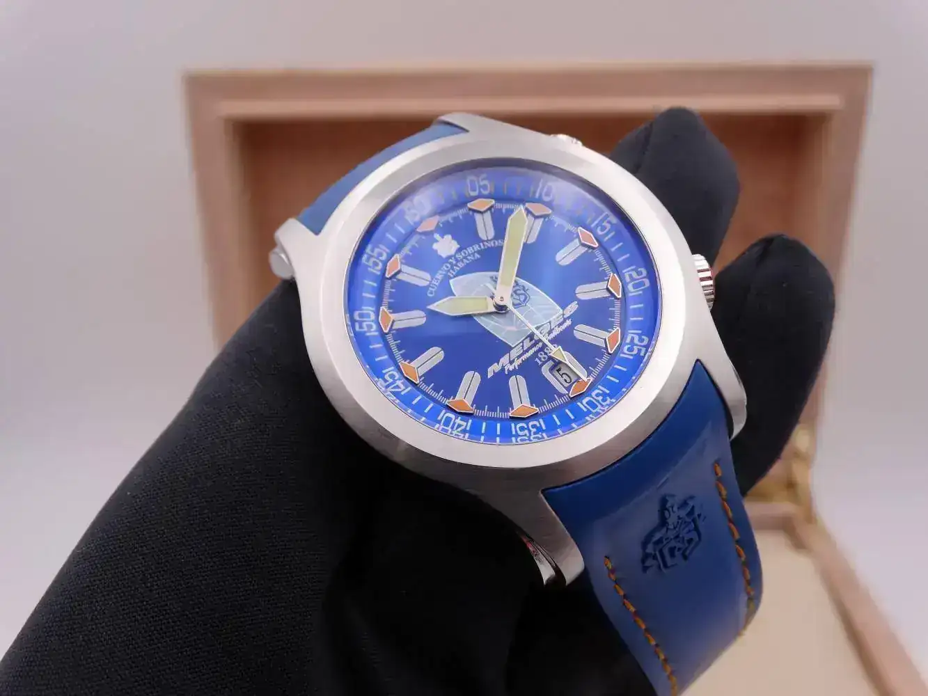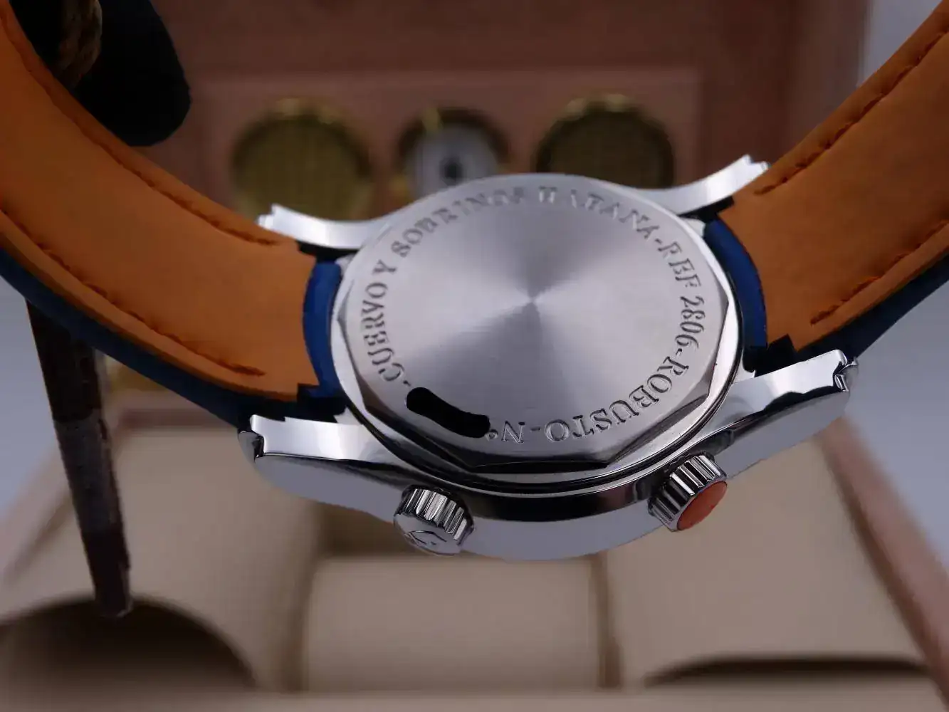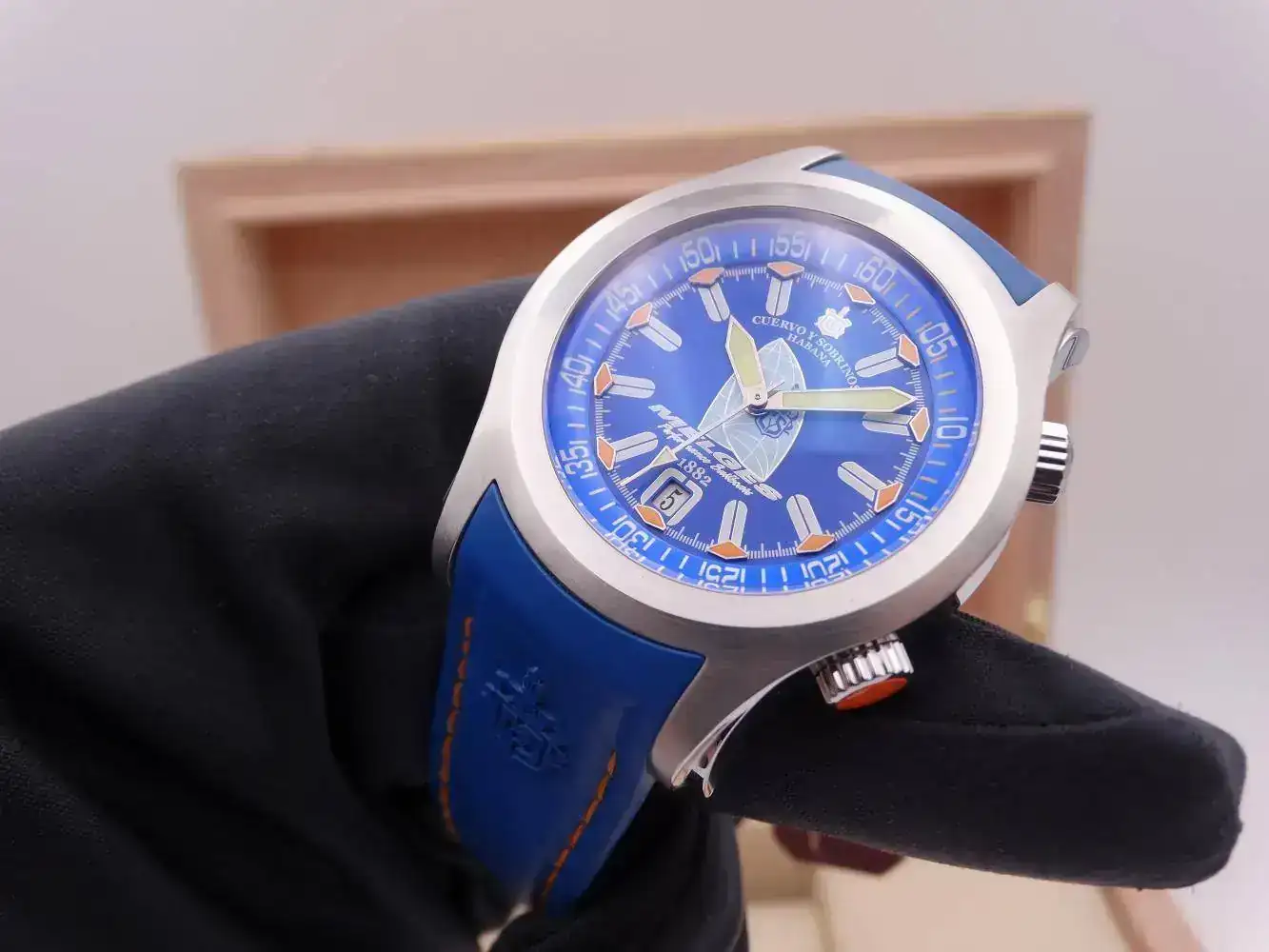Un Diver muy poco conocido, un Robusto Buceador de la casa CUERVO Y SOBRINOS, originaría de La Habana pero con raíces Asturianas. En este caso, el reloj se aleja un poco de los diseños recargados y ostentosos a los que nos tienen acostumbrados, buscando una estética más puramente práctica, con su doble corona, bisel interno y esfera decorada.