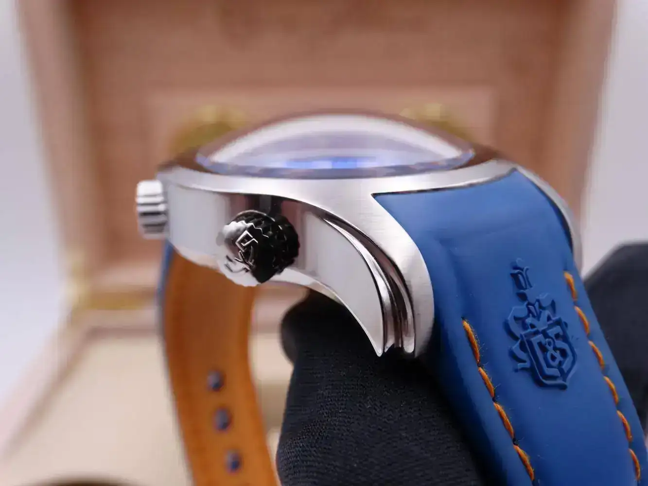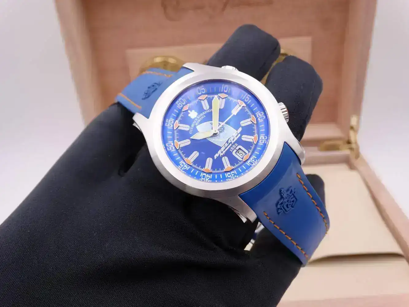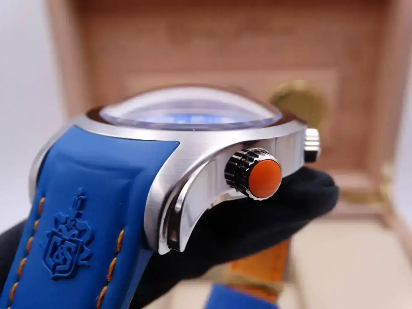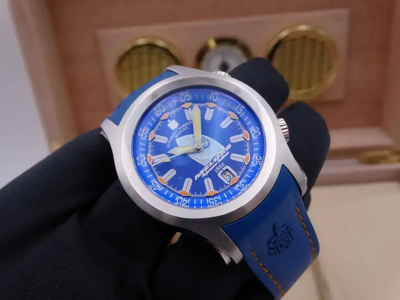 Un Diver muy poco conocido, un Robusto Buceador de la casa CUERVO Y SOBRINOS, originaría de La Habana pero con raíces Asturianas. En este caso, el reloj se aleja un poco de los diseños recargados y ostentosos a los que nos tienen acostumbrados, buscando una estética más puramente práctica, con su doble corona, bisel interno y esfera decorada.