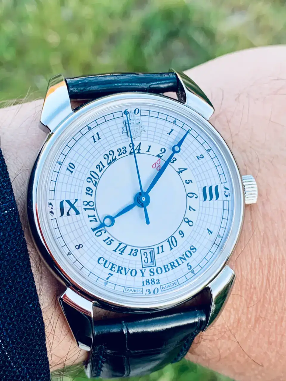 Resulta que hace no mucho tiempo sentado con mi padre hablando de relojes, salió un tema algo que desconocía hasta entonces "Cuervos y Sobrinos". Era un nombre muy sonado en Cuba, incluso para mi joven padre que en aquella época era solo un muchacho y que desde luego la marca quedaba fuera de su alcance. Cuervos y sobrinos para los abuelos de hoy en día y diría que para los bisabuelos era signo de clase, estatus y elegancia. Todos conocían la marca de la joyería mas famosa de Cuba que después también comenzó a presentar sus relojes. Así que si eras de clase alta y tenias dinero "Cuervos y Sobrinos" era el lugar a donde ir. CS comienza a trabajar con Suiza y empiezan a traer Relojes "Swiss Made" pero con su impronta. En Cuba jamás se fabricaron relojes pero esta marca los vendía en una simbiosis perfecta.
