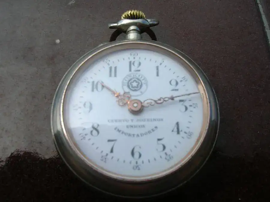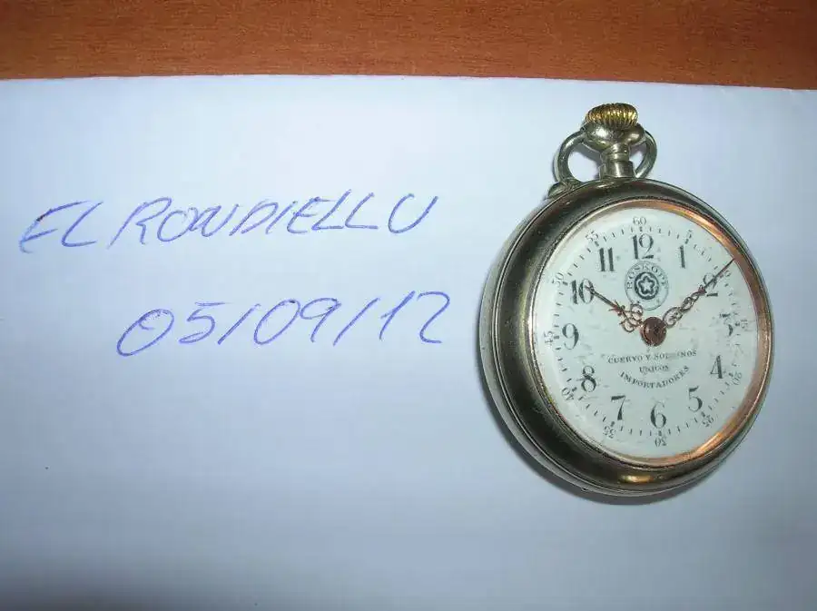 Hola, vendo cuervo y sobrinos de bolsillo Roskopf en perfecto estado como se aprecia en las fotos, de 4,5 centímetros de diámetro. Con garantía hasta octubre de 2012 excepto limpieza y roturas en relojería Yemo de Avilés , donde lo puse a punto. Creo que casi imposible encontrar uno en este estado. Precio con envío por correo certificado y asegurado 420 Euros