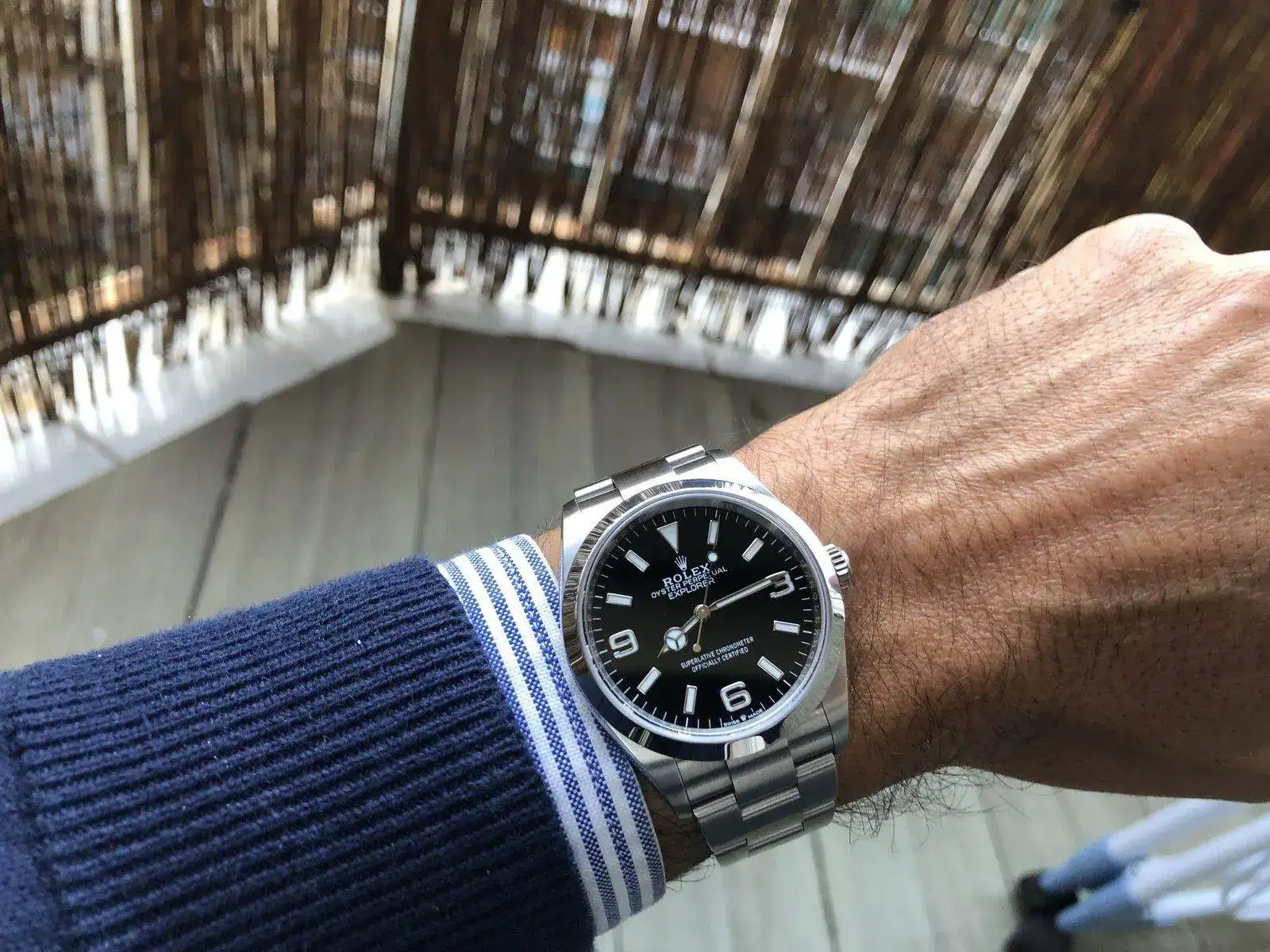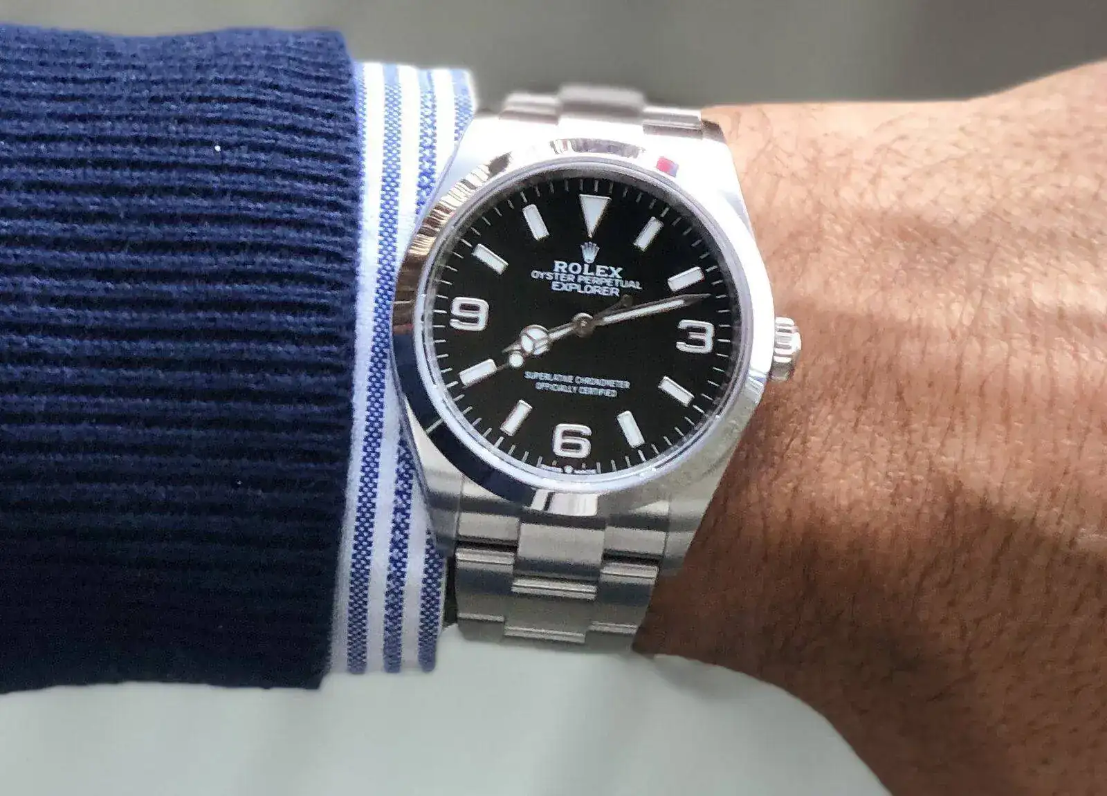 1.70 64kg y 15,5cm muñeca. El reloj es un Explorer 36mm