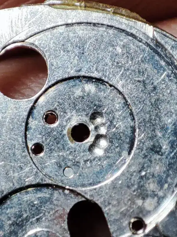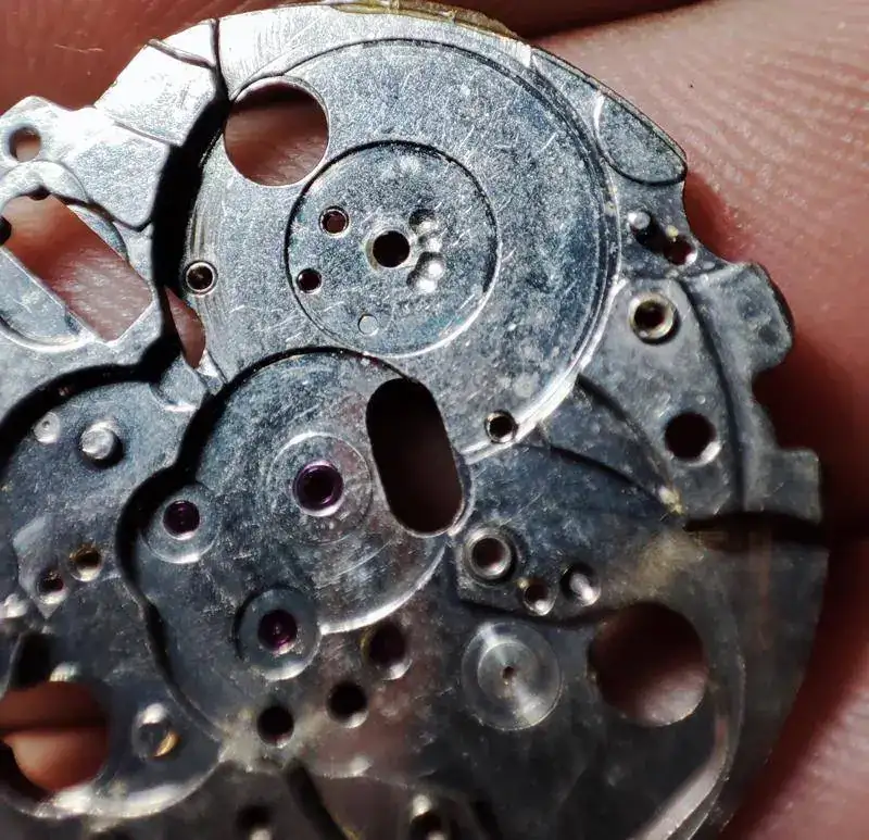 - Llego a casa con la ilusión de poder arreglar alguno de los relojes, y al observar de cerca las pletinas veo esto: