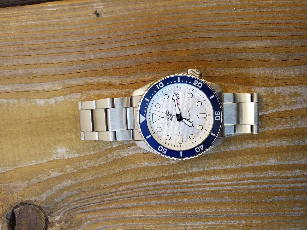 El de más valor para mi. Un jovencito con 50 años a sus espaldas, y que marcha como un campeón. El Seiko de mi abuelo, un 7005-8032. Además, la esfera es muy bonita.