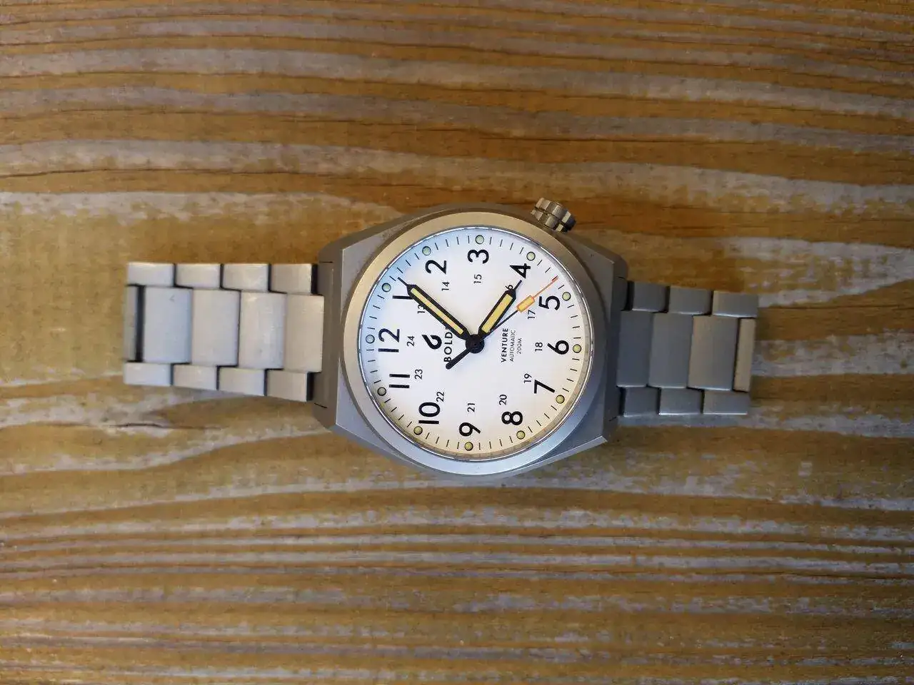 El otro Boldr de la caja. El Venture Sand Storm... Me encantó la forma de la caja, el hecho de estar construido en titanio, y sus medidas contenidas, de 38 mm. Sale mucho, y más después de ponerle también su brazalete.