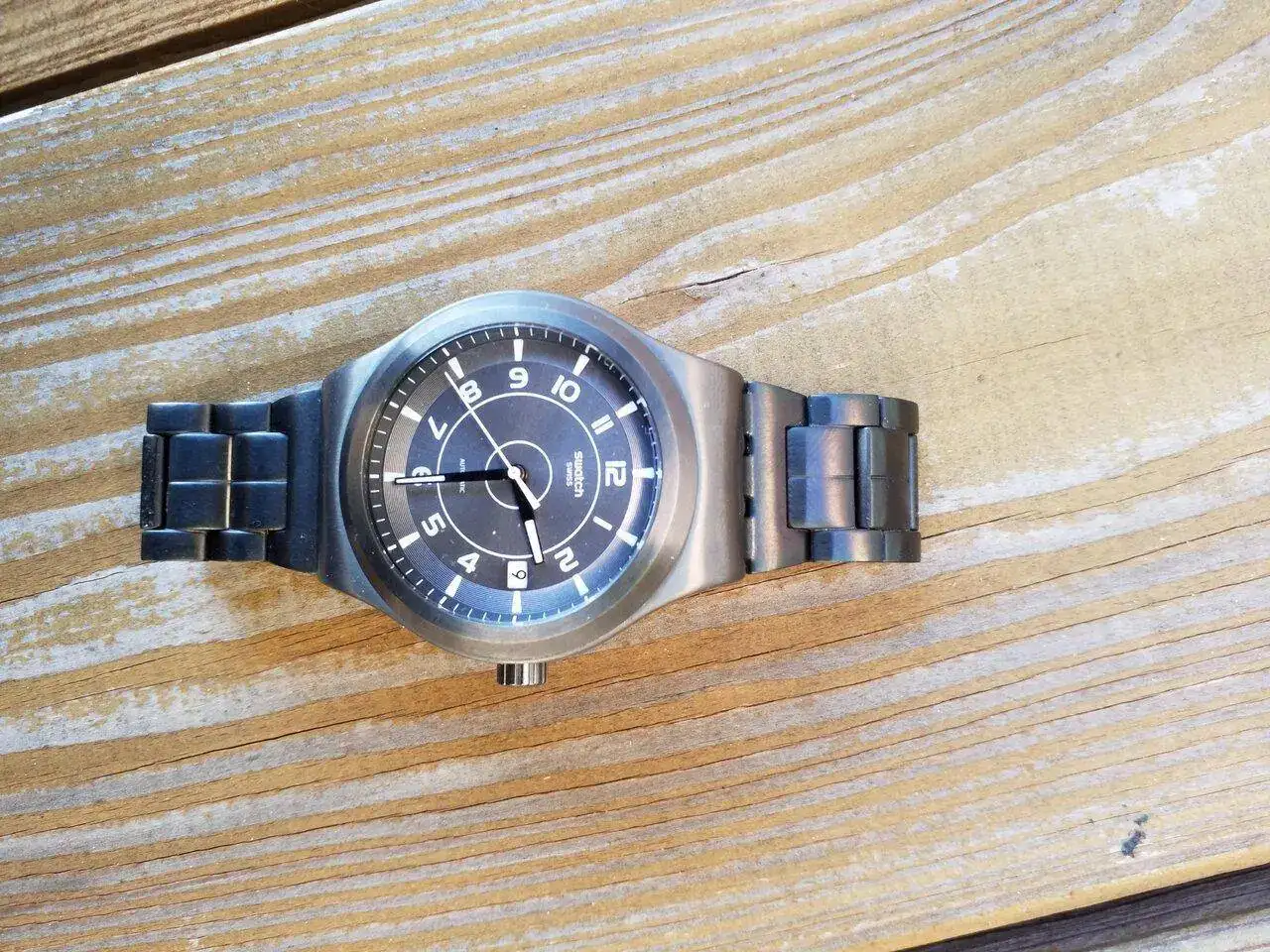 Un Swatch Irony System 51. Sencillo, y con un calibre único. Me gusta pero sale muy poco... El calibre fue decisivo en su compra, y por eso quiero que siga en la caja.