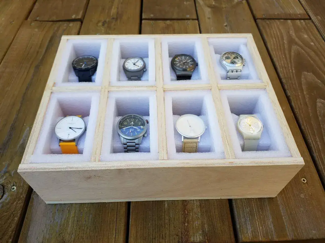 Es una caja en la que me gustan todos los que están, aunque algunos salgan muy poco. Y que desde hace unos meses, guarda un par de relojes de mi hija, que no usa, y que, a uno de ellos yo le he dado un poco de uso...