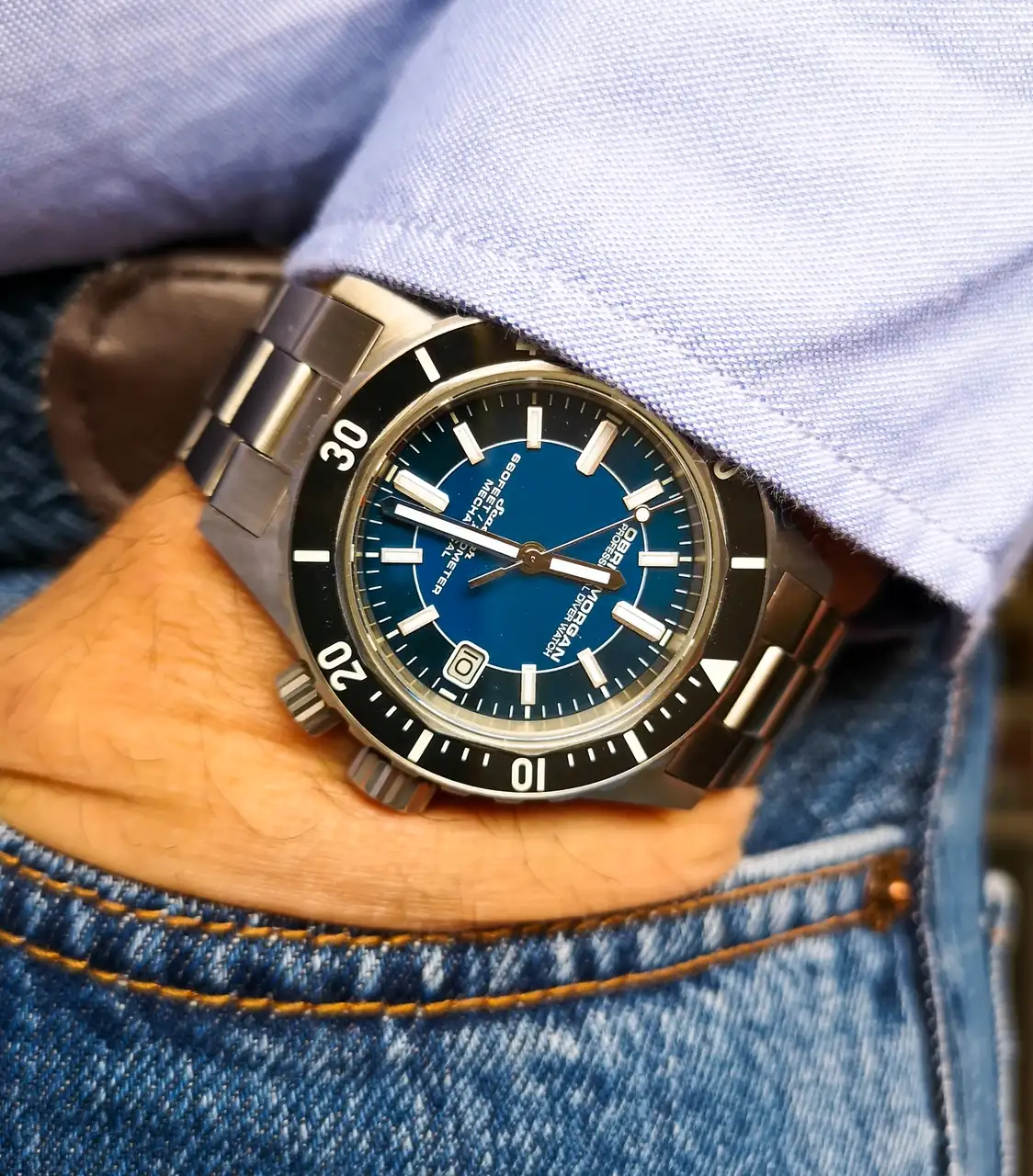 OBRIS MORGAN SEASTAR 60s. Fue la primer micromarca a la que me aventuré comprar, luego de leer muchos hilos donde hablaban muy bien de ella. Un reloj estupendo, muy delgado y cómodo de llevar en la muñeca. Es el reloj que más he llevado en mis inmersiones en el mar. No es diver certificado pero es 200m y con eso vas sobrado, creedme.