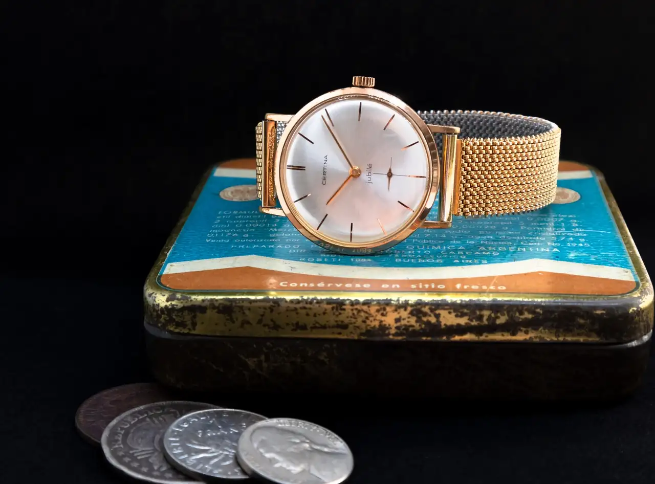 CERTINA JUBILÉ. Regalo de una ex compañera de trabajo. Estuvimos trabajando codo a codo durante 7 años, hasta que cambié de curro. Me lo trajo el último día, era de su padre, lo usaba “para fiestas y ocasiones importantes”. Lo tuvo en un cajón guardado durante años. Cuando me lo dio me dijo "Sé que lo dejo en muy buenas manos y que lo apreciarás". Lo lleve a hacer una revisión. Funciona perfectamente. Fabricado para durar. Un reloj con mucho valor sentimental para mí.