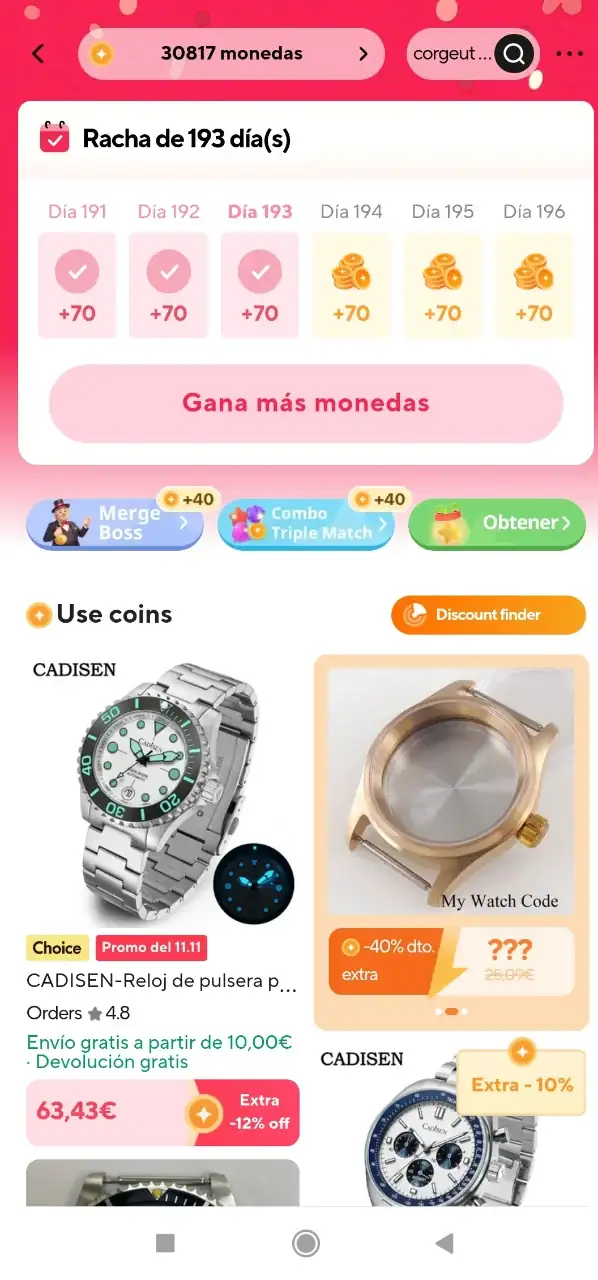 Lo primero es de perogrullo, necesitamos cuantas mas monedas mejor, para ello hacemos la colecta diaria entrando en la app de Aliexpress.