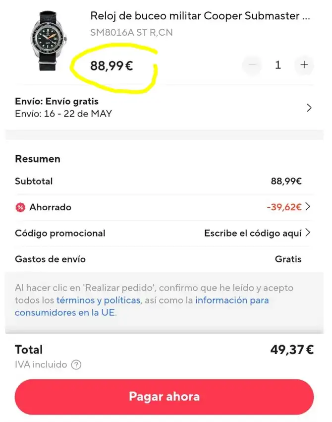 El eterno misterio de Aliexpress... a tí te sale en 79 € y a mi por menos de 88 € no lo encuentro...