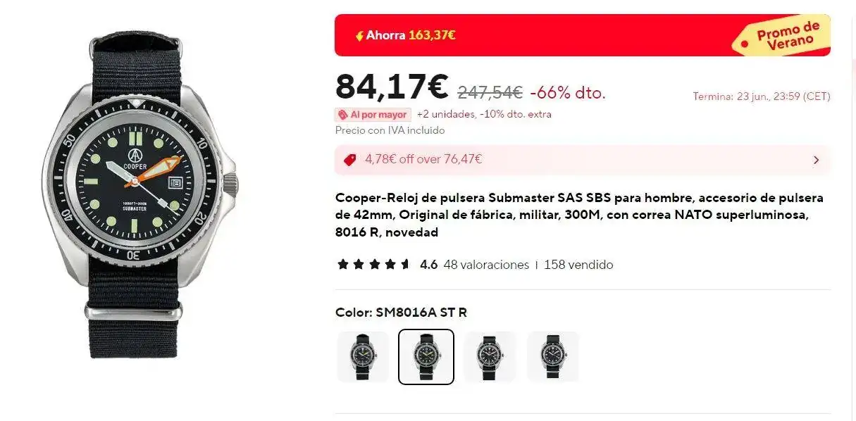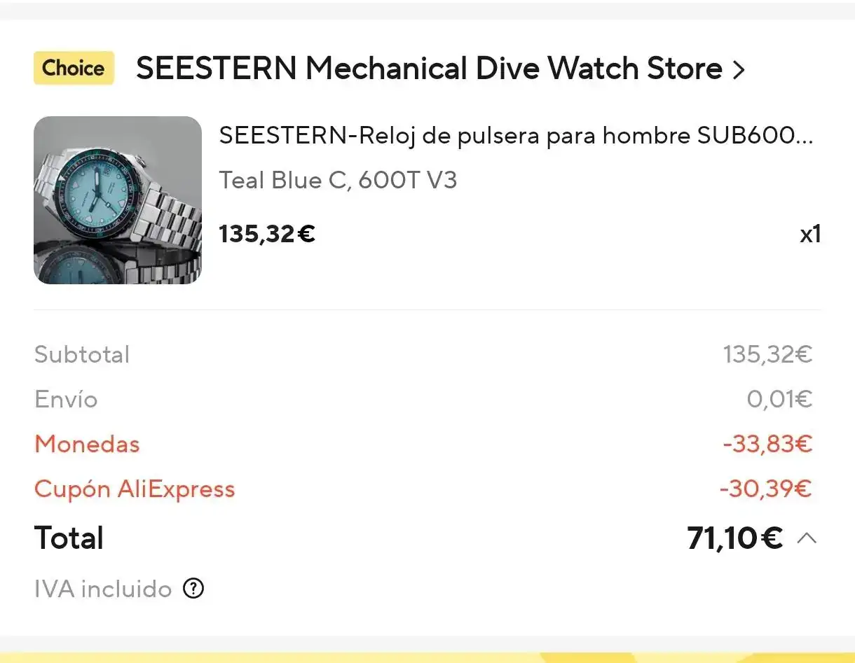 Exactamente. Hay un mundo de relojes y ya saldrá otro, aunque mi mujer me dice que no compre mas, pero si solo tengo mas de 20 !!😂😂😂A mi me saldría por 212 pero igualmente es un riesgo al superar ampliamente los 150. Difícil no tirarse al barro...😅