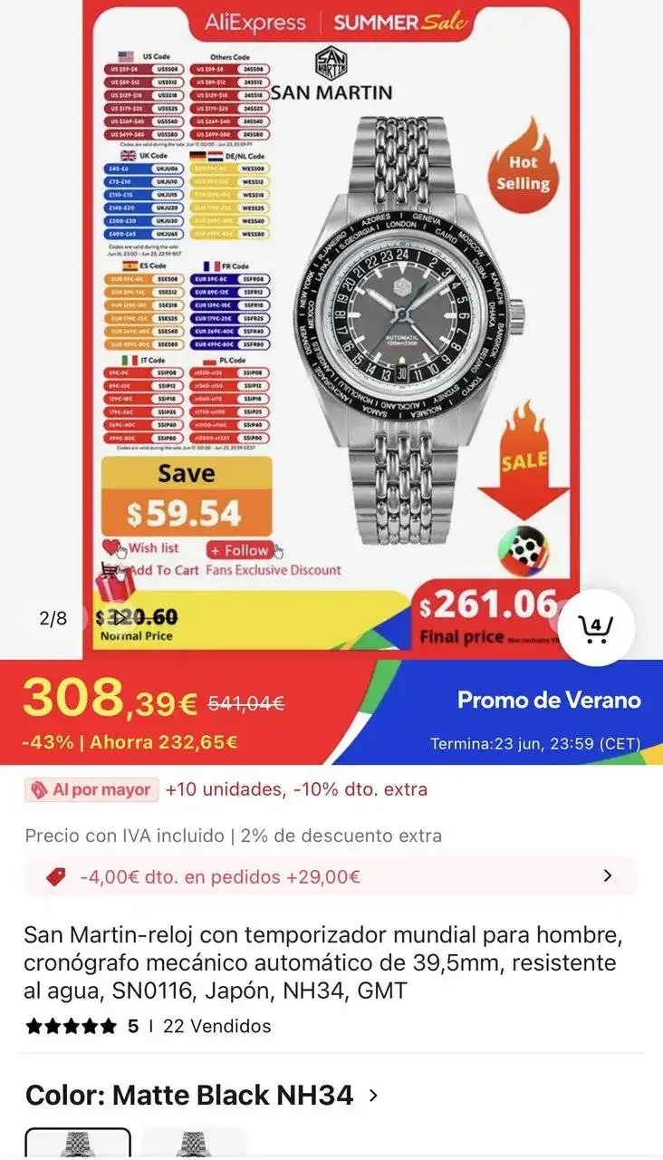 No sé si darle al botón de pagar o no. Este san martin es sencillamente precioso y sale con un buen descuento pero sobre pasa los 200 euros y me da miedo lo de las aduanas que me salga más caro. Que haríais en mi lugar ?. Os la jugaríais ?. Este reloj me sale por 246 , es un GMT.