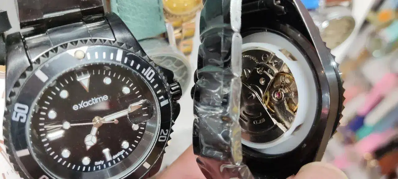 ...y me encuentro el típico stand de relojes y entre ellos uno sin la tapa de detrás: veo que es un mecanismo automático? Es normal, cuando a los que hay al lado no le funcionan los botones de cronómetro siquiera, por ser de adorno?