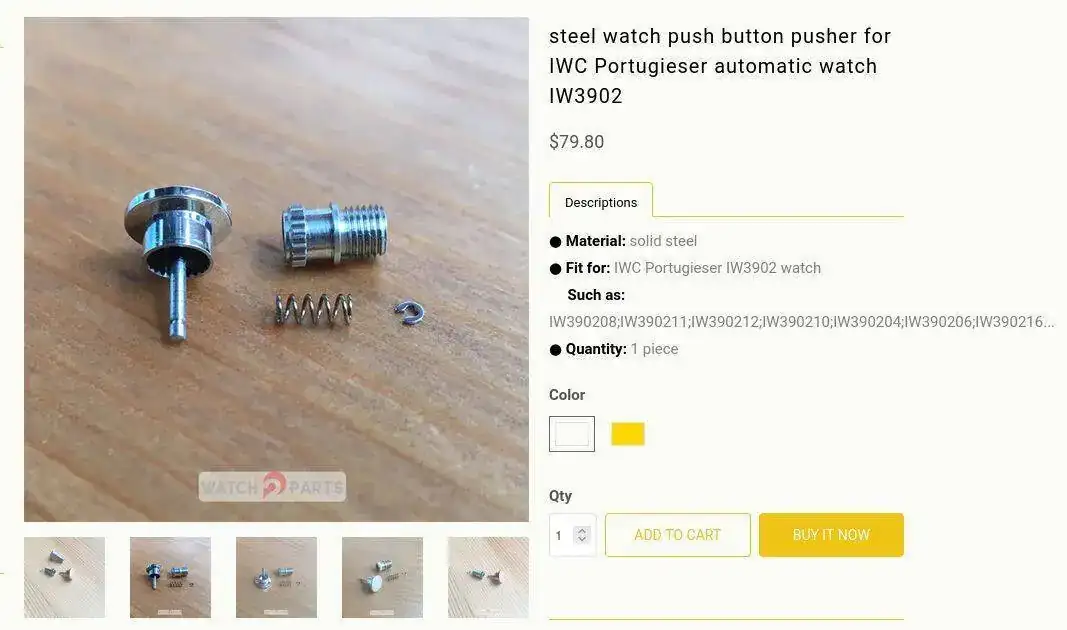 El caso es que anoche al sacar mi IWC Portuguese vi que le faltaba un pulsador. No tengo ni idea de como, cuando ni dónde fue. Con toda probabilidad cuando lo metí en la caja, hace unas cuantas semanas, ya no estaba. En fin, como decía aquel, cosas que pasan.
