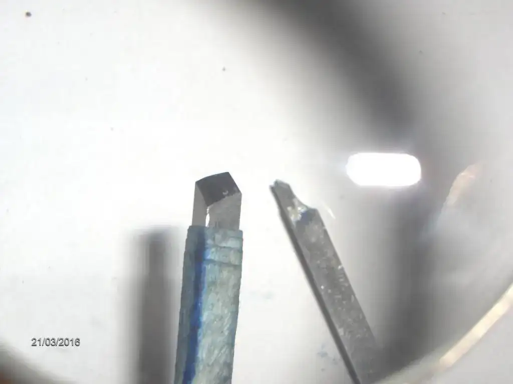 que efectivamente debe estar en la forma del buril y en el afilado, dos aspectos sobre los que creo me falta mucho por aprender.Me vienen de camino unas barritas cuadrangulares 4x4 mm de HSS y una piedra de afilar de grado 3000 (estaba convencido que había pedido de 6000