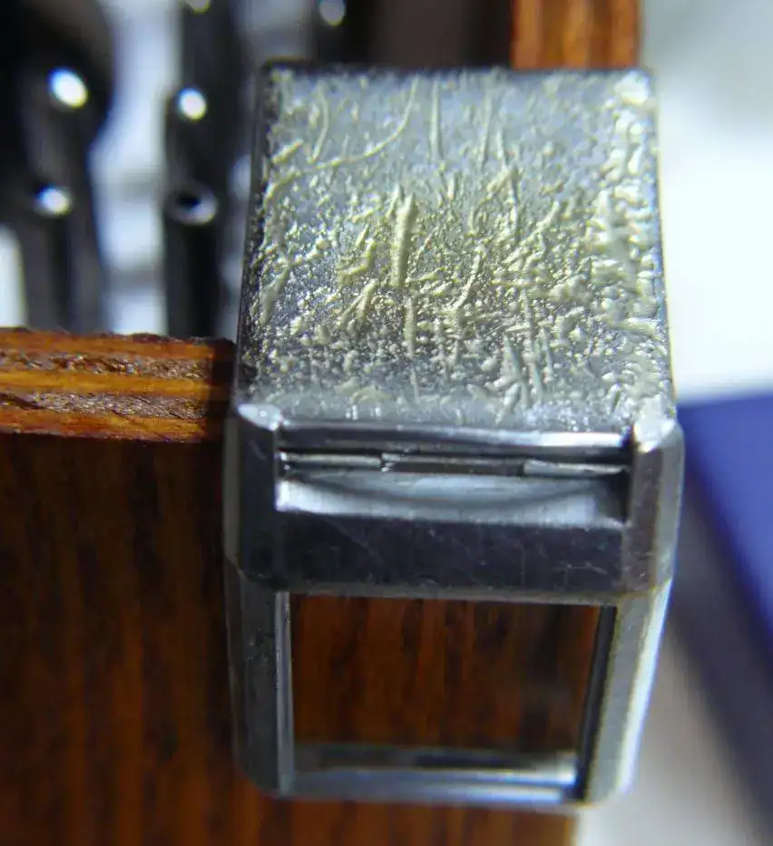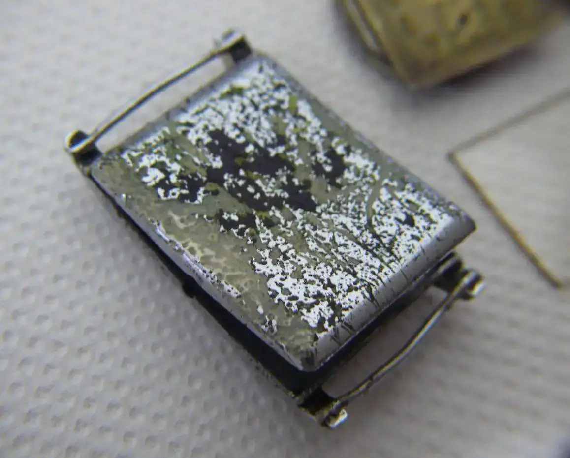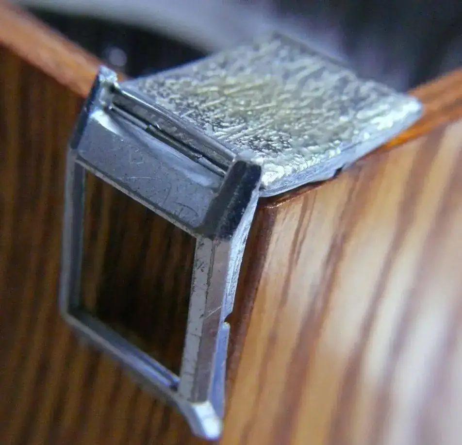 La caja, una vez limpia y desengrasada, la he barnizado con barniz de metales y en la parte trasera le he dado una generosa capa de barniz para tapar todos los surcos del sudor ácido.