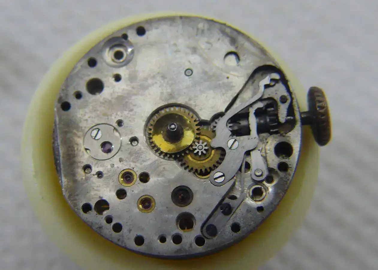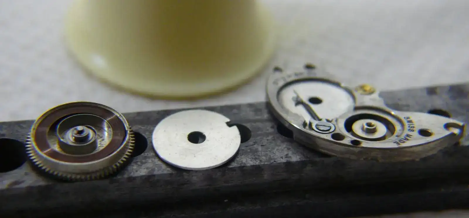 Las agujas puestas y una gotita de pintura azul metalizada en el centro para fijar la minutera que quedaba un poco sueltecilla