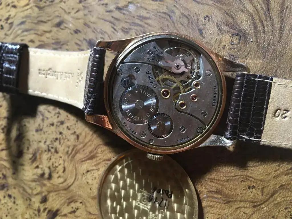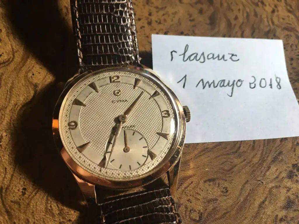Caja (medidas): 38 mm sin contar la corona. La caja es de oro 18k original Cyma