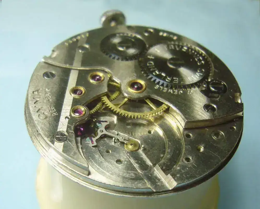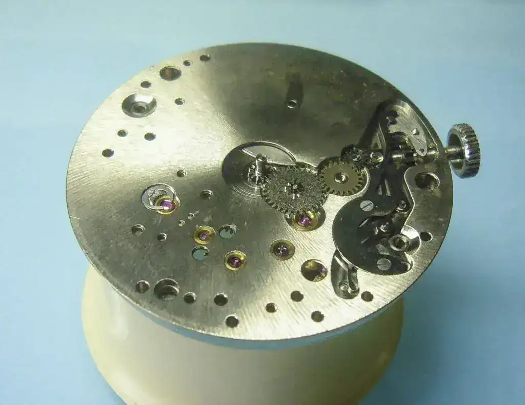 Por el otro lado podemos ver, antes de cubrirse, el conjunto de ruedas que forman parte del remontoir