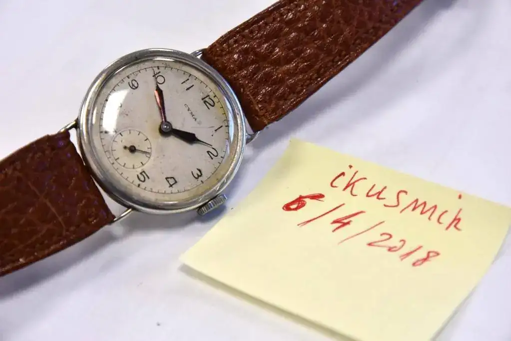 Hola, vendo éste bonito Cyma de agujas azules, con caja de plata de 32mm y 29mm de esfera por lo que no hace tan pequeño. El reloj no va bien, funciona nada más darle cuerda, esta revisado, pero al parecer y según el relojero, el volante parece a su entender que esta acortado en alguna vuelta y se acelera bastante, habría que ponerle un volante nuevo y como tengo que dar salida a varios no lo voy a arreglar. Si alguno es un manitas es buena oportunidad.