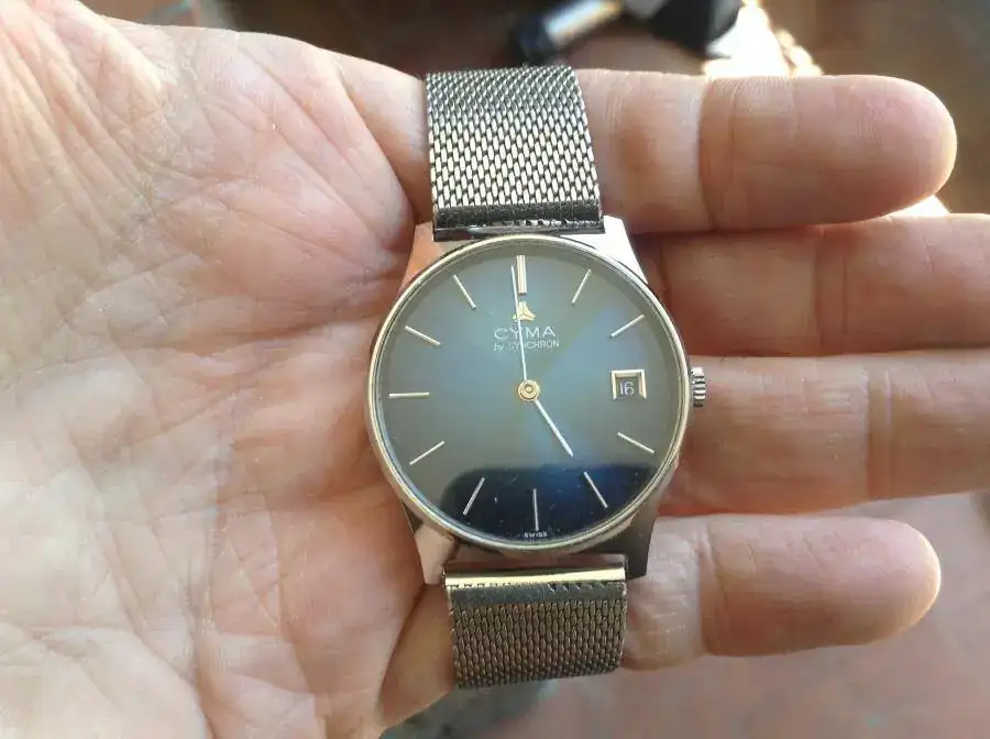 Estupendo manual, acero y cristal hexalyte. Muy bien consrvado solo leve marca en borde cristal que aparte no tiene rayas. Las fotos son testigo, aunque al natural es mas bello con el juego de luces de la esfera. Funcionamiento muy bueno y corona original con logo syncron.