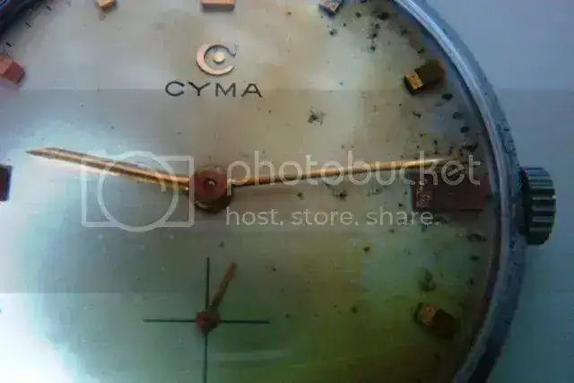 Hola amigos, pues eso , pongo a la venta este antiguo cyma de la serie sincron calibre 701,cuerda manual, el calibre esta completamente impoluto y funcionando correctamente, la caja y esfera, pues como vereis en las fotos el tiempo les a dejado su señal.