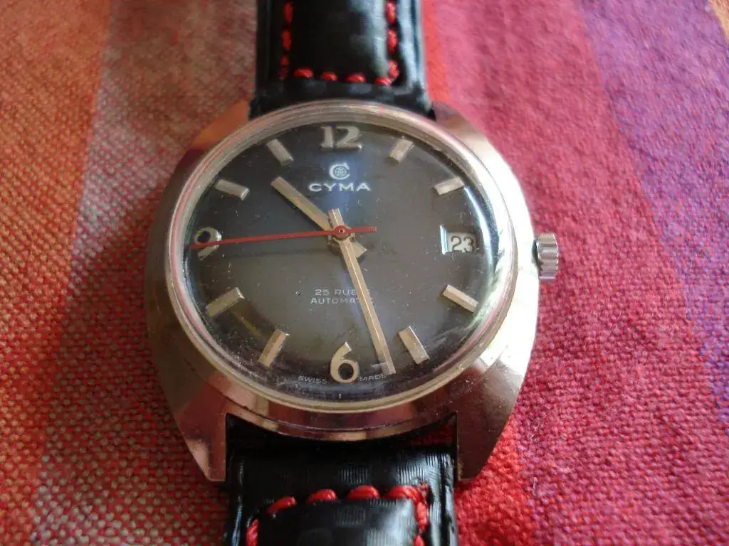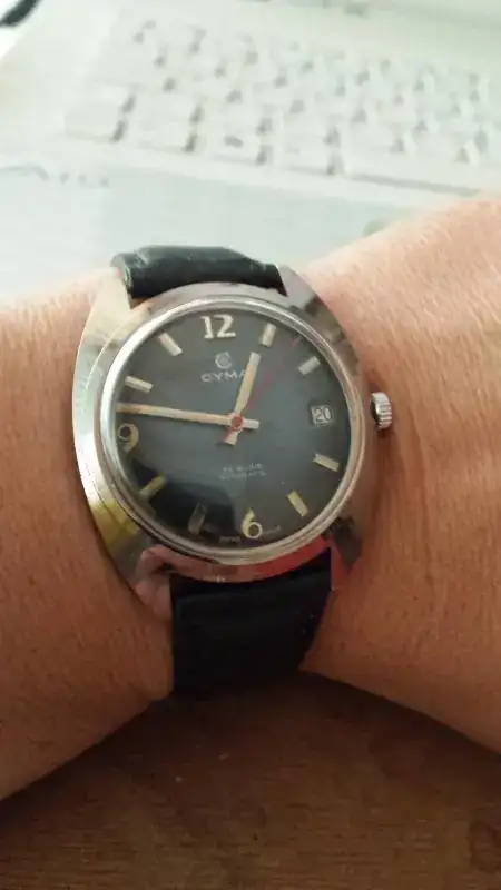 Saco a la venta este vintage Cyma con cal. R 485.2 Cymaflex. Perfecto de funcionamiento y estéticamente teniendo en cuenta su edad. Algunas pequeñas sombras en la esfera poco apreciables.