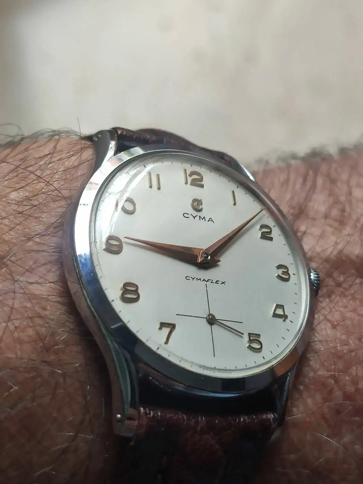 Hola a todos. Pues básicamente porque no me lo pongo y porque he acumulado muchos, pongo a la venta este magnífico Cyma calculo que de principios-mediados de los 60. El reloj está mejor de lo que se ve en las fotos, está impecable. La marcha es muy buena y el calibre como se puede apreciar en las fotos está de lujo.
