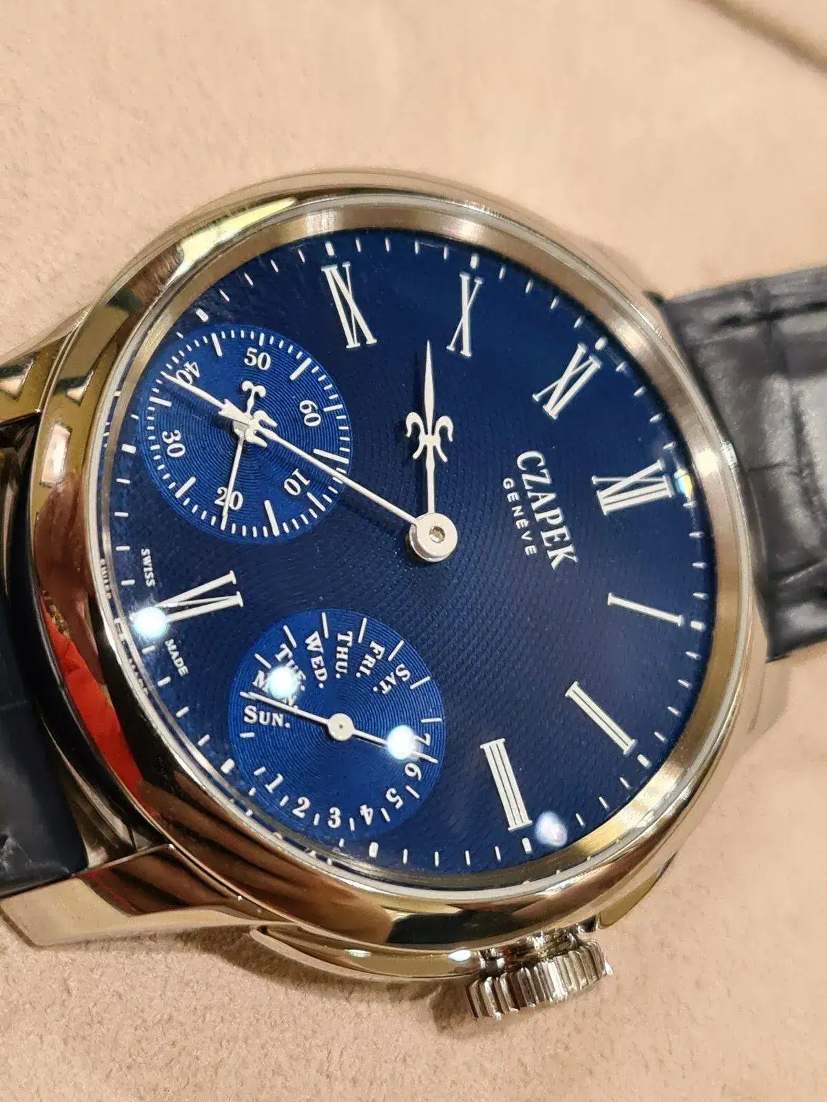 Qué pasada ese azul! Suerte tenerlo en mano.Me parece una pasada de reloj. Cuando lo ves más de cerca, el trabajo tridimensional sobre la esfera es muy impresionante. Por medidas y prestaciones, creo que es un gran gran único reloj. Además creo que le puede sacar los colores a muchos más venerados...