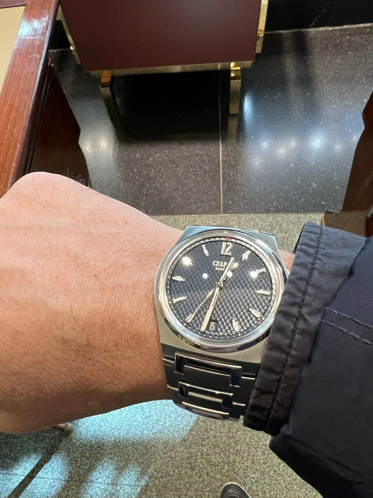 El diseño está claramente dirigido al sector de reloj deportivo de lujo con brazalete integrado y unos tratamientos de altísima calidad, destacando los brillantes eslabones centrales pulidos en forma de C de Czapek sobre las cepilladas hileras exteriores. Realmente en muñeca es muy atractivo. Precisamente junto con el del Overseas me parece el brazalete más cómodo y logrado de todos, y al pesar menos que el Overseas es incluso más cómodo (esto, sí que si no lo hubiera probado de verdad no me lo creería nunca).