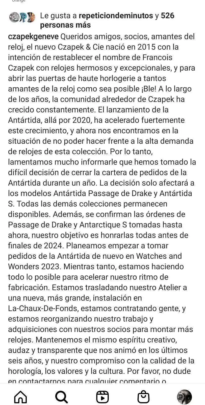 No sólo es el Antartique, en el mayor distribuidor de Czapek en USA de 22 modelos la mitad están SOLD OUT…