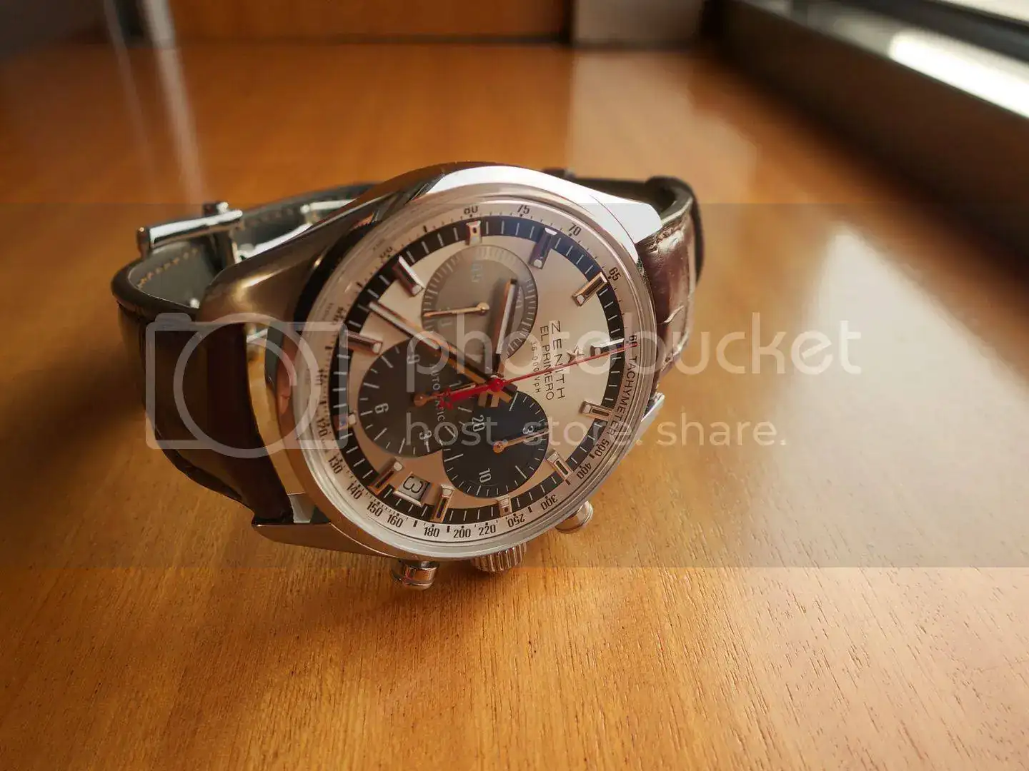 Me acompaña hoy el último en entrar en mi caja, el Zenith El Primero Original 1969, eso sí hoy sin traje ni corbata, que para eso es sábado :-P