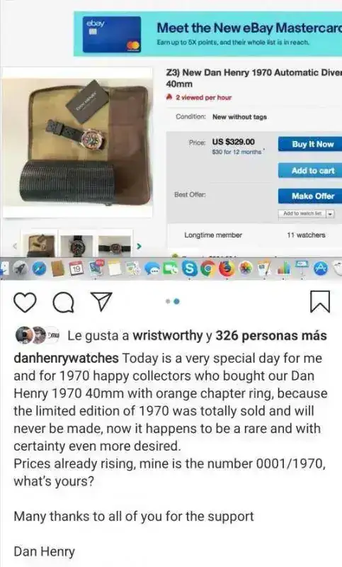 Dan Henry también puso una captura de eBay donde alguien pide 329 USD