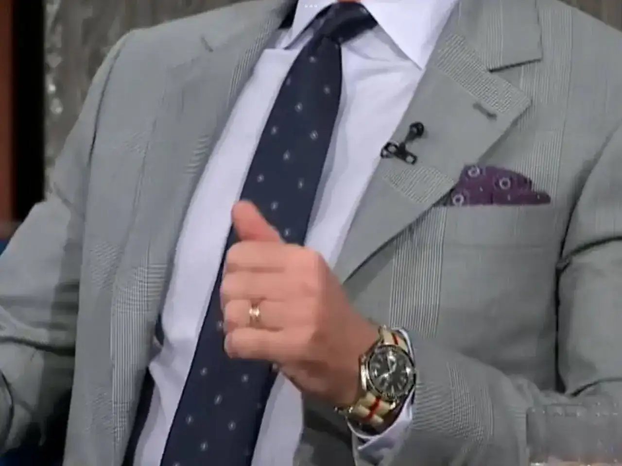 Estas dos ultimas fotos están sacadas de una entrevista que le hicieron hace pocos días en el programa The Late Show a raíz de su última película. Sin duda se trata de un Seamaster vintage. La tenéis en YouTube, por si os interesa.