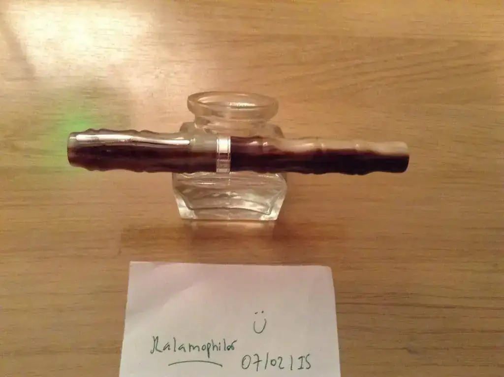 Casi no la uso, así que pongo a la venta esta rareza. Es una pluma de la marca americano- japonesa Danitrio, que hace plumas de gama muy alta en urushi y en materiales raros. Este es uno de ellos: cuerno de búfalo de agua de Tailandia con forma de bambú. El color y el tacto es diferente a cualquier otra cosa, os lo aseguro.