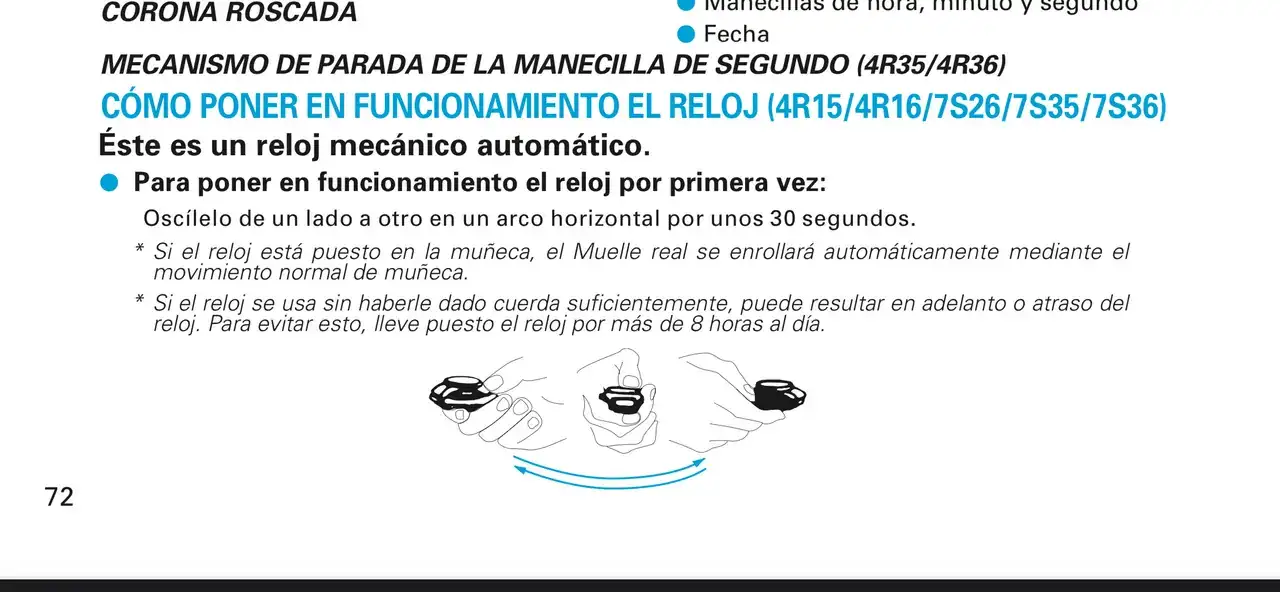 Allá por los primeros años 80, sobre el 81/83, conocí por primera ver un reloj automático y lo que me enseñaron era que no había que darles cuerda (al contrario que a mi reloj, que era de cuerda manual) sino que se les "movía" un poco por la noche, antes de acostarse, y ya tenía carga para tirar.