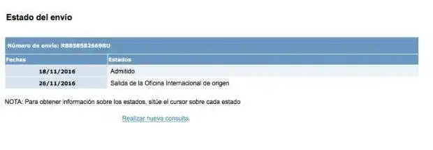 Yo estoy en la misma situación, salida del país de origen el día 30/11/2016.Compañero, en la página de Correos aparece como que salió de Rusia el día 28.