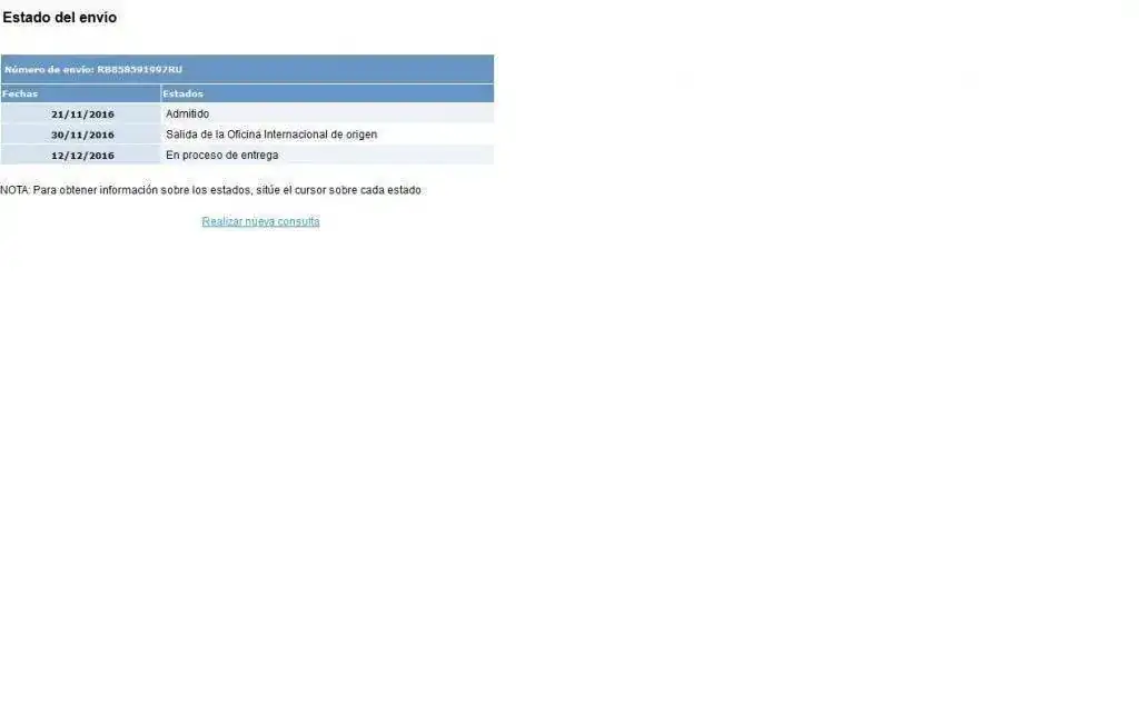 Pues el mio está en el limbo desde el 28/11. A ver si cambian el estado en correos.