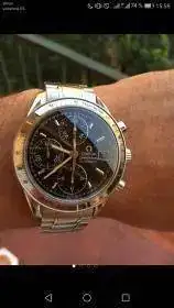 Hola compañero, la foto es muy mala, pero a simple vista no tiene mala pinta, parece un Speedmaster Date de 40 mm. De los que montan una Valjoux 7750, yo tuve la referencia 3210.50.00 que era misma caja, misma díal pero con certificado Chronometer.