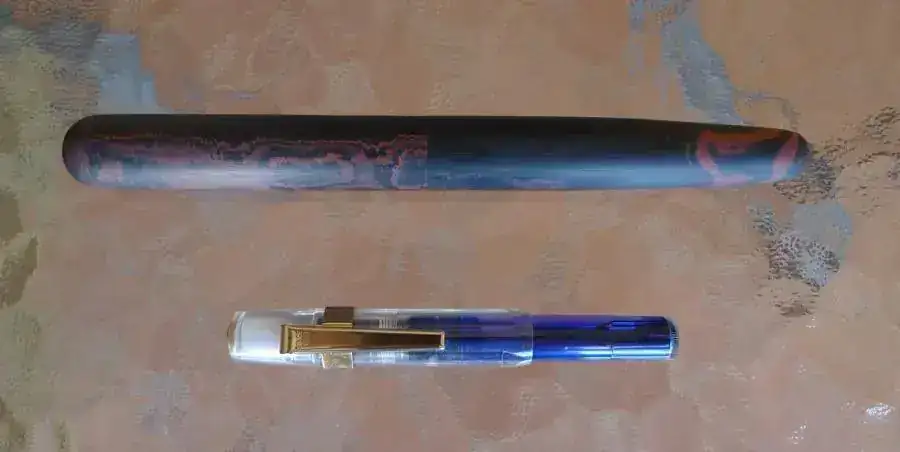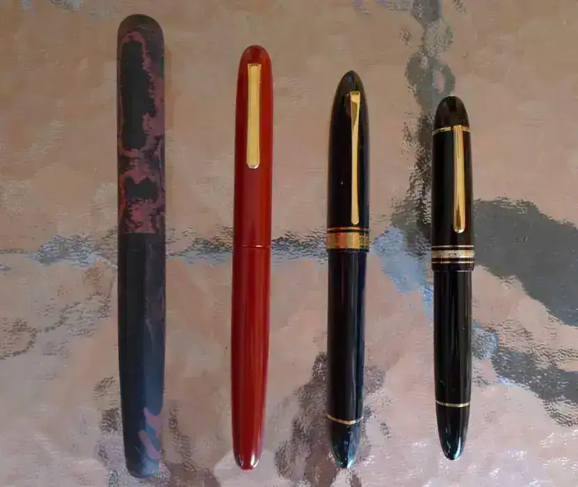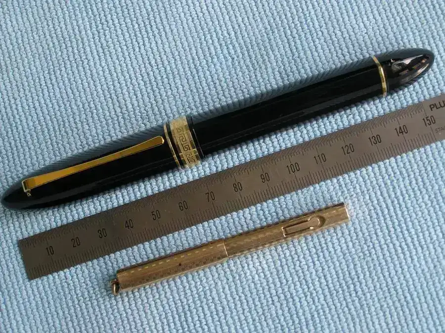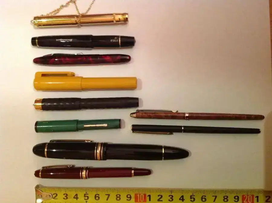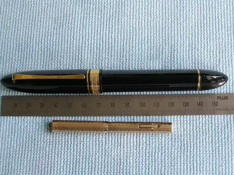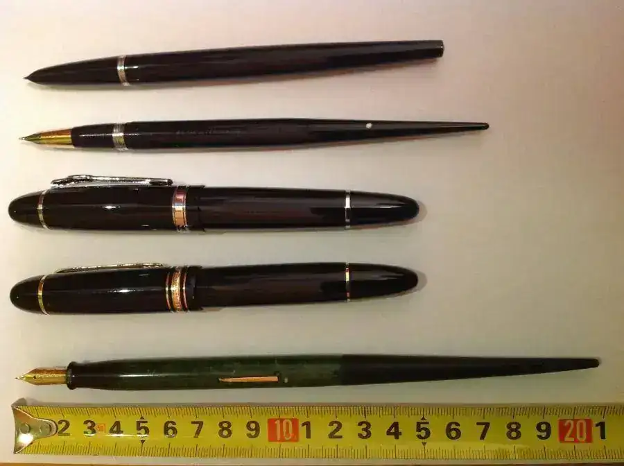 En mi caso la mas grande que tengo debe ser una OMAS 360 de las primeras series, con cargador por émbolo, que mide casi unos 16 cm. cerrada. Un auténtico plumón.