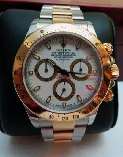 Pongo en venta mi querido Daytona Mixto. Me embarco en un nuevo proyecto fuera de este mundillo y uno tenía que salir . El reloj se compró a un prestigioso mercante y gran conocedor de la marca, en Noviembre del 2015, solo ha sido usado los domingos y dias de guardar, ya que siempre me a parecido una pieza muy especial y elegante. Su estado es practicamente como cuando lo compré, algunos mínimos pelillos concentrados casi todos en la parte del cierre que son inevitables por el brillo de los eslabones con oro, un entendido me dijo que con una leve pasada de Caped salian pero no lo he creido necesario ya que se tienen que mirar a la luz para verlos. Comos se aprecia en las fotos (con mis limitaciones fotográficas, pido perdón) el estado es magnífico. La caja de madera lacado piano es una delicia y está en perfectas condiciones.